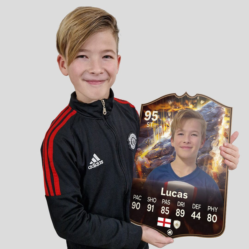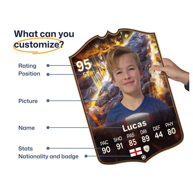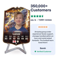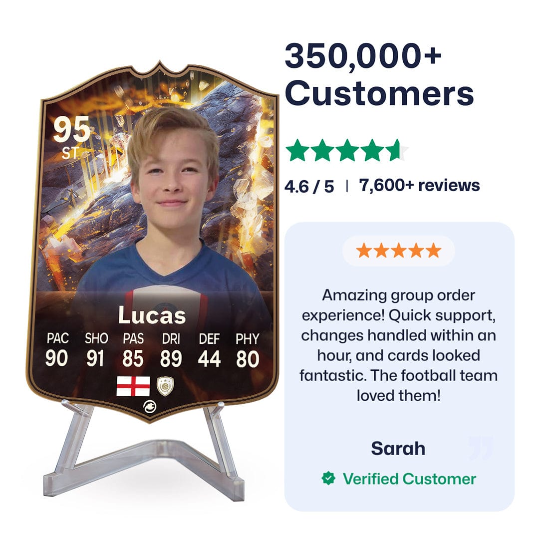 Yes! Our football card designers will remove the background from the photo you upload so it looks just like the football cards you might’ve seen games like EA FC 25, EA FC 24 or FIFA. We’ll also position the photo perfectly on the football card so it looks great. If there are any problems with the quality of your photo, we’ll reach out and let you know. Plus, our website's AI will remove the background on the image for visual purposes before purchase so you can see it without a background on the card.